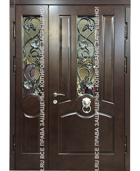 Железная подъездная дверь МДФ с ковкой/стеклом 1117